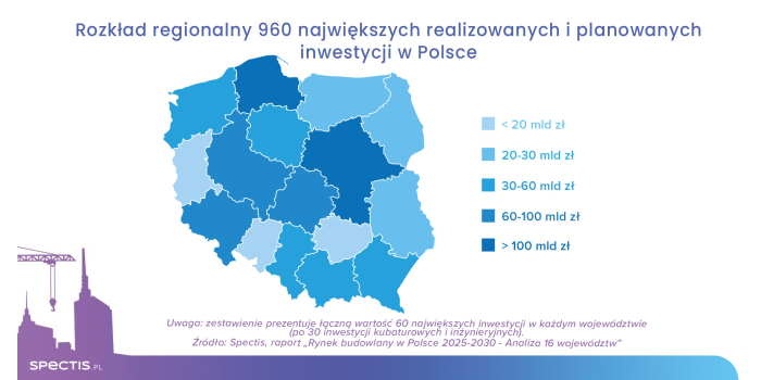 z etapu koncepcyjnego do fazy realizacji. Raport regionalny Spectis ujawnia, które województwa przyciągają najwięcej inwestycji i jakie segmenty budownictwa mają największy potencjał wzrostu.