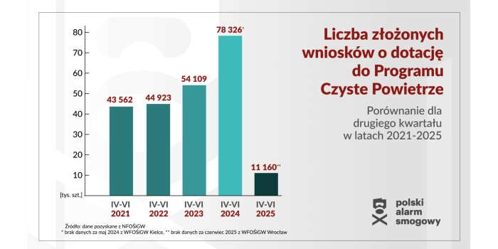 Jak wynika z danych zebranych przez Polski Alarm Smogowy (PAS), w trzy miesiące od ponownego uruchomienia programu „Czyste Powietrze", złożono zaledwie 11 160 wniosków – to siedmiokrotnie mniej niż